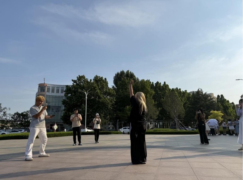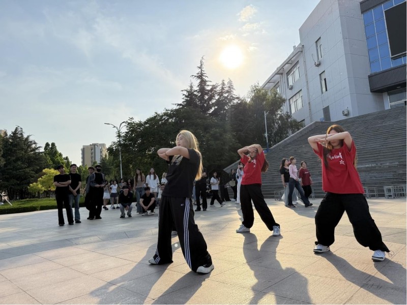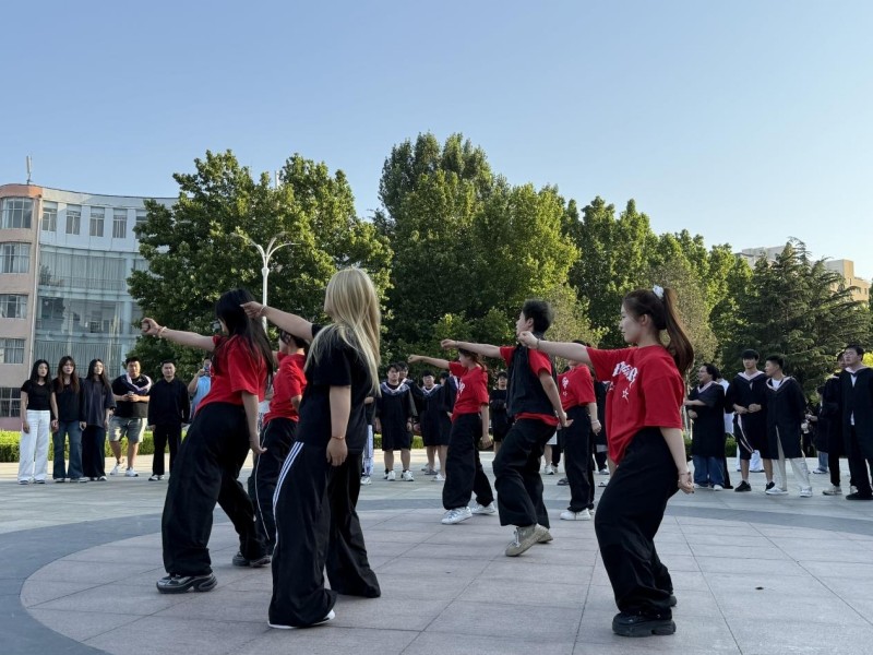 随着广场上空奏响激昂奋进的旋律,学院快闪活动正式拉开帷幕。参演师生身着充满青春气息的服装,既有传统舞蹈的柔美婉约,又有街舞的酷炫动感。街舞团队以利落的 Breaking 地板动作、流畅的 Popping 震动控制,配合整齐划一的齐舞编排,在广场中央翩然起舞。舞者们用饱满的热情、精湛的技艺,将力量与节奏完美融合,生动展现对舞蹈艺术的执着追求,深刻诠释新时代青年昂扬向上的精神风貌。现场气氛热烈浓厚,大家纷纷用手机记录精彩瞬间,在欢快的节奏中,共同抒发对祖国的真挚热爱和深切祝福,活动现场成为展现学院师生风采、凝聚奋进力量的亮丽风景,律动的身影与跃动的音符交织成画,让每一个瞬间都定格为对时代的热忱礼赞。